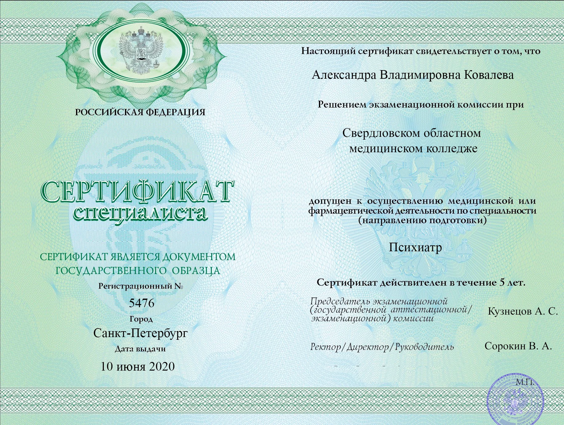 Должность: Психиатр, врач-общей практики, кандидат наук